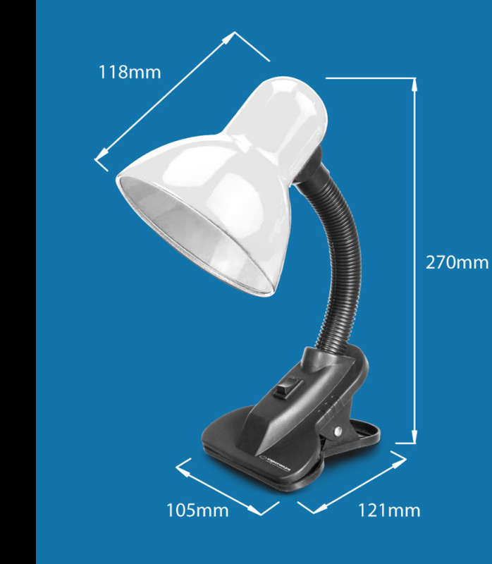 Asztali lámpa klipsszel, amely lehetővé teszi a lámpa egyszerű és gyors rögzítését az asztalra.