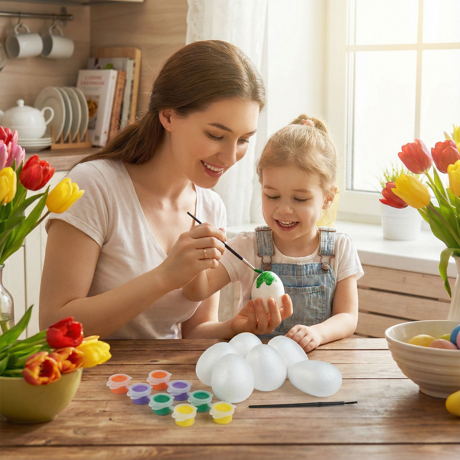 | Csomag tartalma: | 6 db tojás, ecset, 8 színű festék, organza tasak |