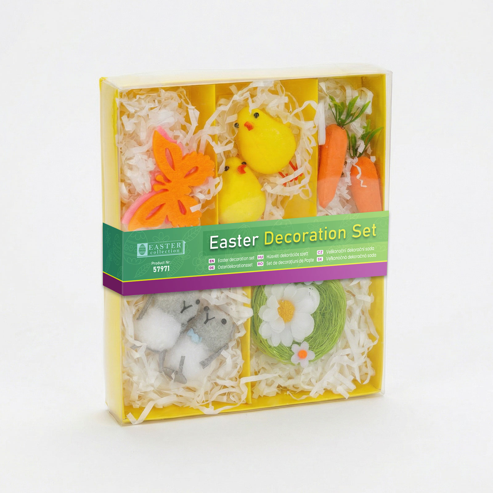 | Csomagok lehetséges alkotóelemei: | Répa Virág vagy pillangó Csibe Nyuszi Fészek vagy tyúk |